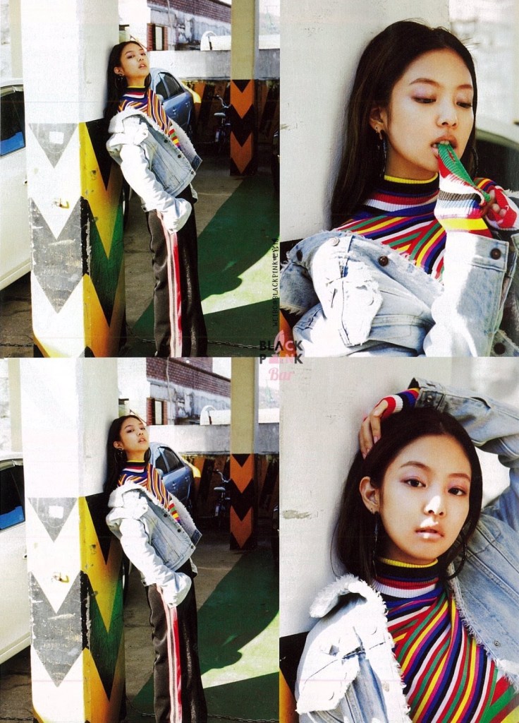 جيسو: جميعنا نصنع أوجه لطيفة عندما نلتقط الصور، لكن تعابيرنا تتغير عندما نذهب إلى المسرح، أدائنا الحي رائع جدًا! ليسا وجيني المسؤولات عن الراب، لذلك عندما تغنيان بهدوء أثناء الرقص، نشعر أننا مختلفون جدًا عن فرق الفتيات الأخرى. في كوريا، يطلق على الفتيات الجريئات والفريدة من نوعهن “الفتيات القويات”. نريد أن نصبح “بلاك بينك” الفتيات المحطمات.