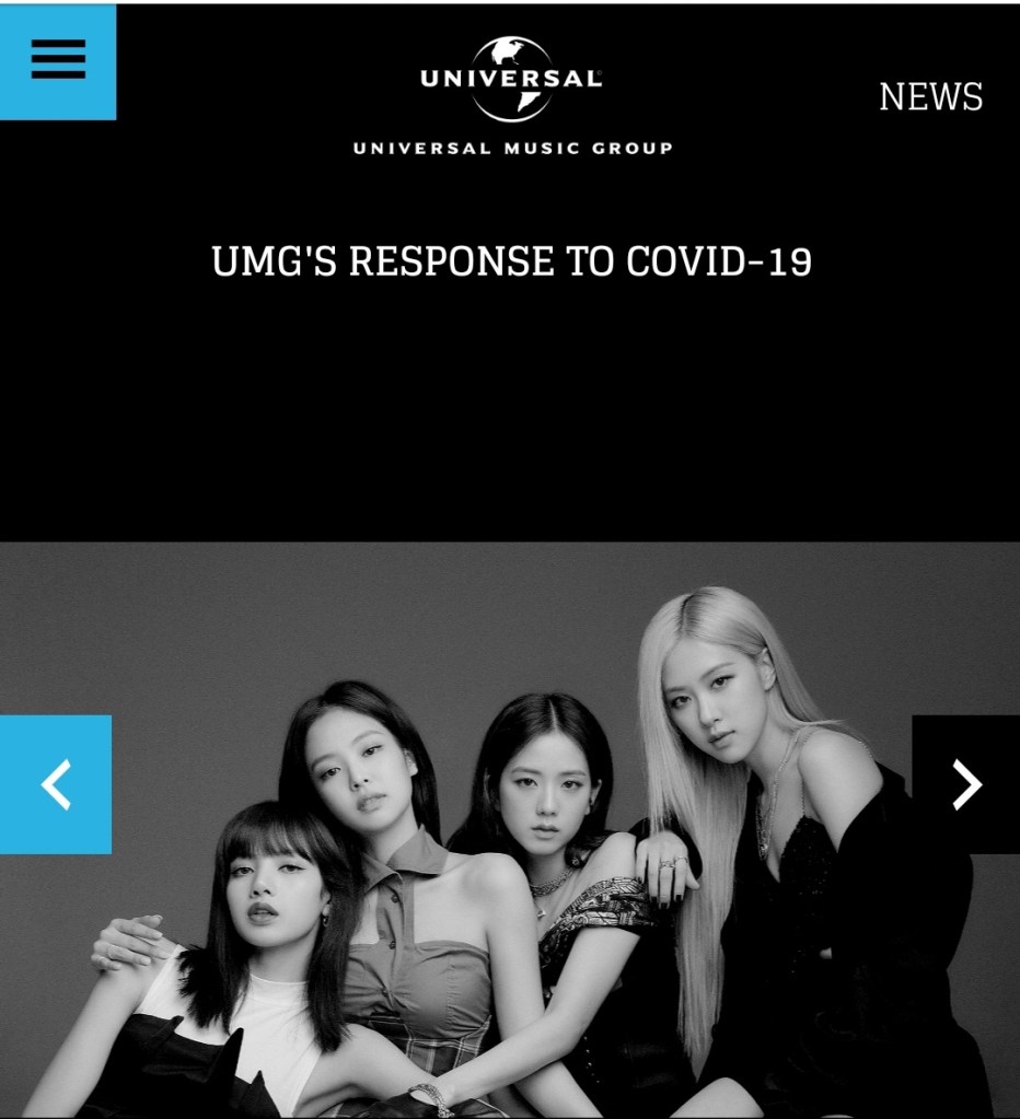 ٣/بلاك بينك متواجدين الان على الصفحة الرئيسية (Universal Music) وهي الشركة الموسيقية رقم 1 في العالم