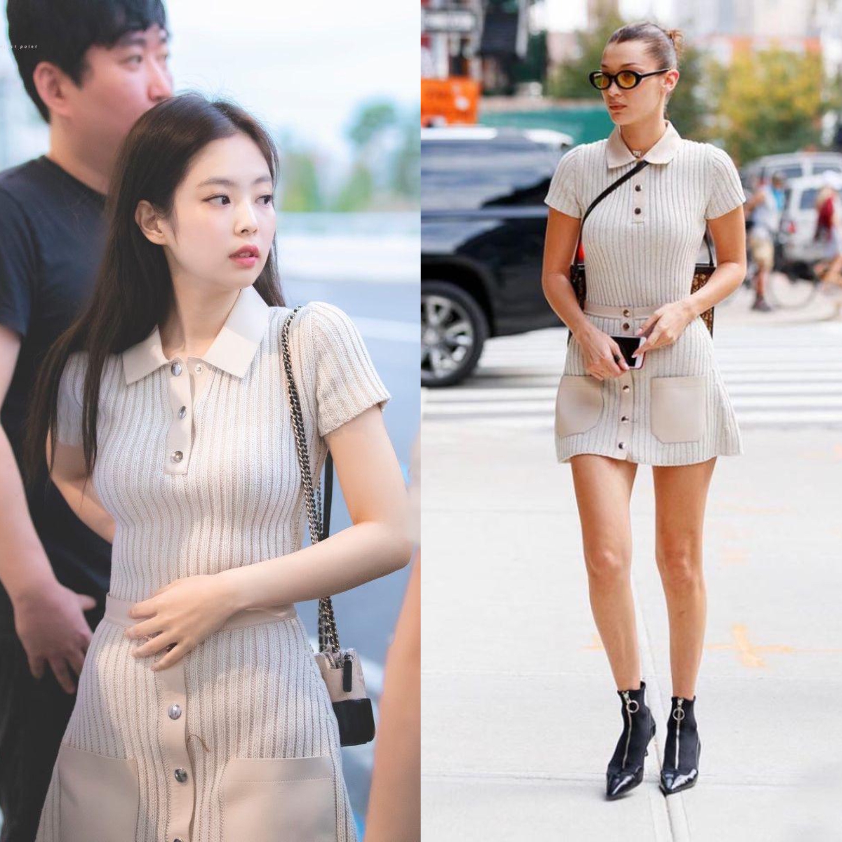 -جيني لديها خط الاكتاف المثالي، توافق جسدها مع الملابس امر مذهل وكأنها جزء من جمالية الاشياء