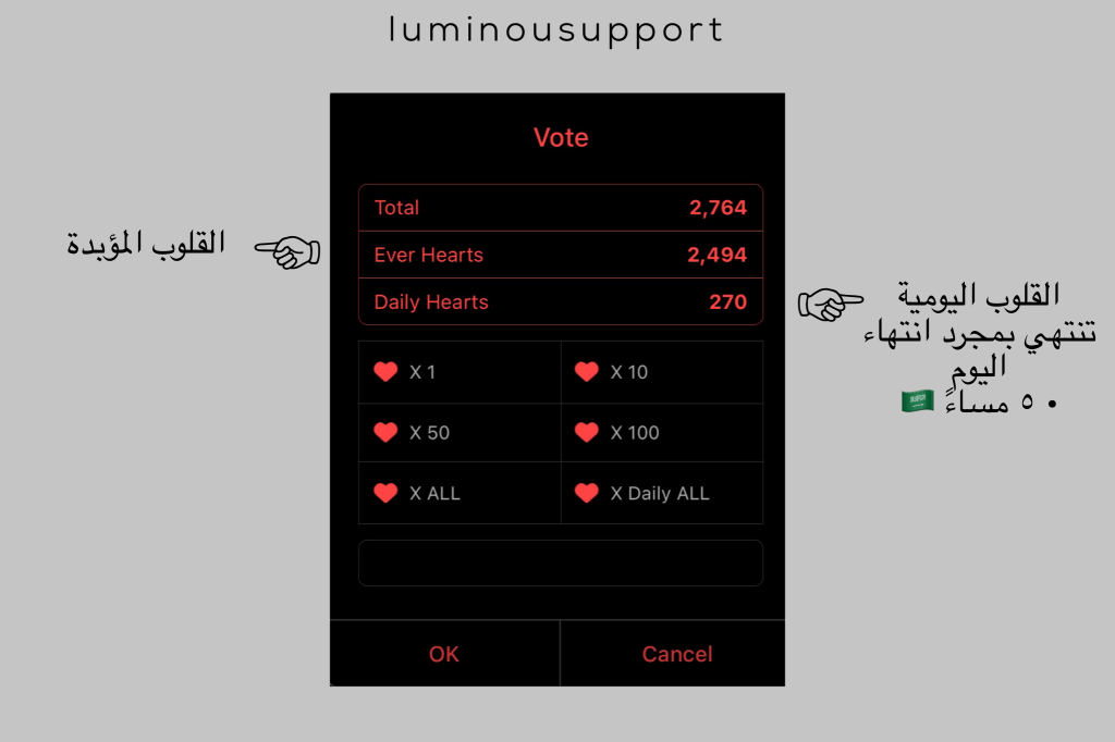 ✦ تأكد من الدخول يوميًا والتصويت بالقلوب اليومية قبل ان تنتهي في ٥ مساءً 🇸🇦